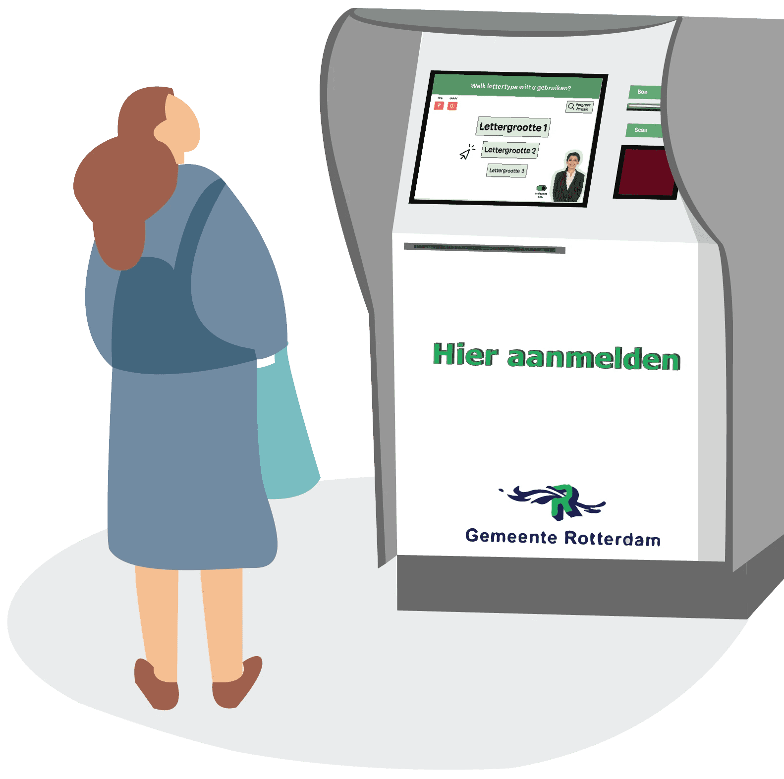 Gefocust op IxD. Kijkend naar hoe Gem ouderen van 70 tot 80 jaar die slechtziend zijn zo goed mogelijk helpen op fysieke locaties, specifiek aanmeldzuilen, in de rol van gastpersoon.