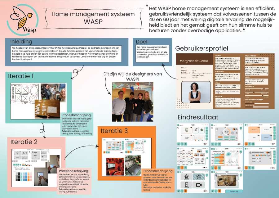Het WASP home management systeem geeft de mogelijkheid voor de gebruiker om zo gemakkelijk mogelijk de onderdelen verlichting, thermostaat en beveiliging van zijn/haar huis te besturen vanuit 1 systeem, wat is bevestigd met een tablet aan de muur. Het systeem biedt veel informatie over het huis zelf maar ook over de daarbij horende functies, dit zorgt ervoor dat het tot eigen wens en detail geregeld kan worden. Echter is het systeem wel makkelijk en efficiënt te besturen wat zorgt voor een groot gebruikersgemak.