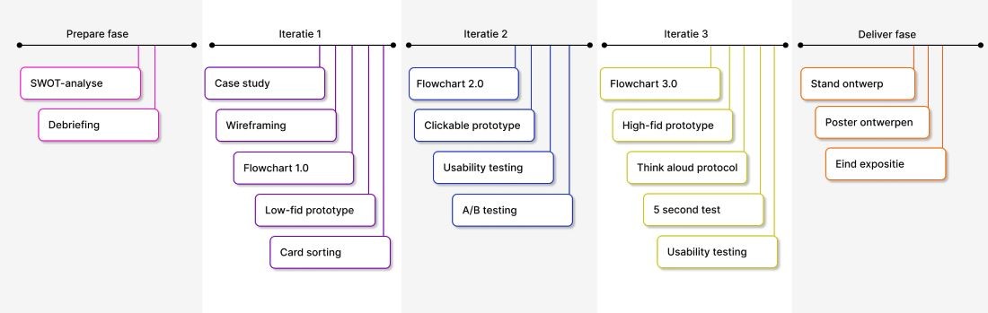 Ik heb mij hierbij constant bezig gehouden met de navigatie in het systeem door mijn tests hier op te focussen en door veel te itereren met de flowchart. Ook het UI design gedeelte heb ik mijn focus op gelegd door dit los te testen van het systeem, en dit pas later samen te voegen. Op deze manier heb ik heldere inzichten gekregen voor de vormgeving van het systeem.
